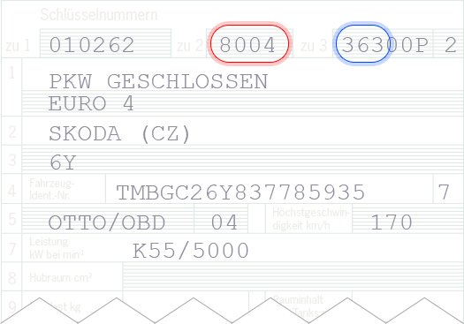 You can also select your car by Manufacturer key number (HSN) or Type key number (TSN). You will find these in your vehicle registration document or your registration certificate Part I.