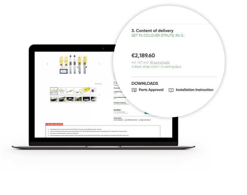 You can download parts approval and installation instructions free of charge at the DTSshop, on the product detail page. To get to the product detail page, either search for a product code or select a vehicle. Here’s how you do it.
